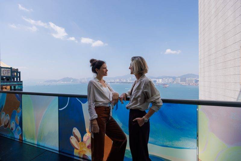 步入 Soho House 的門廊,視覺的驚喜便已揭開序幕 。法國藝術家Faustine Badrichani與壁畫家Elsa Jeandedieu聯手呈獻的《普羅旺斯遐想》(Reverie in Provence),將會所大門與 29 樓 Harbour Room 露台化作通往南法的視覺燈塔 。這件作品以兩位在港法國藝術家的共同記憶為起點,將童年對普羅旺斯的各種想像,構成既私密亦普世的「失落樂園」 。Faustine以極簡線條將身體凝視為活態典藏,而Elsa則以通透層疊的肌理注入情感流速,這作品透過女性視角重新定義空間,探討親密與力量、孤獨與自由的微妙平衡 。