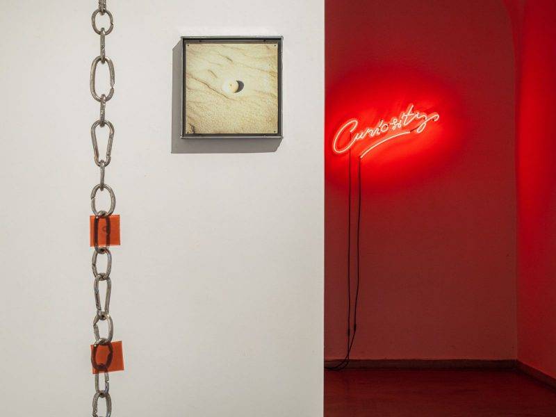 Installation view of Curiosity by Marta Frejutė, 2022. Neon lamp, 35 x 75 x 6 cm. Photo by A. Vasilenko.(圖片來源:Marta Frejutė and Meno Parkas Gallery)