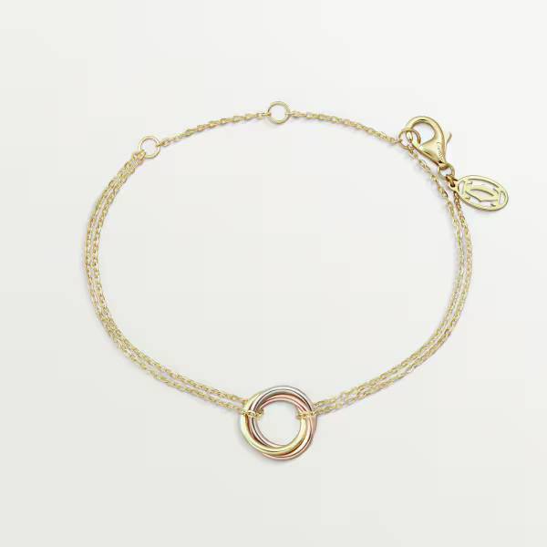 提到Cartier,可能大家會先想到Love系列,其實Trinity系列的三色金三環象徵愛情、友誼和忠誠,寓意別具心思,也很適合在佳節當作禮物以表心意。手鏈的黃金雙鏈條設計,加上相互繾綣的三環,層次感和動感十足。