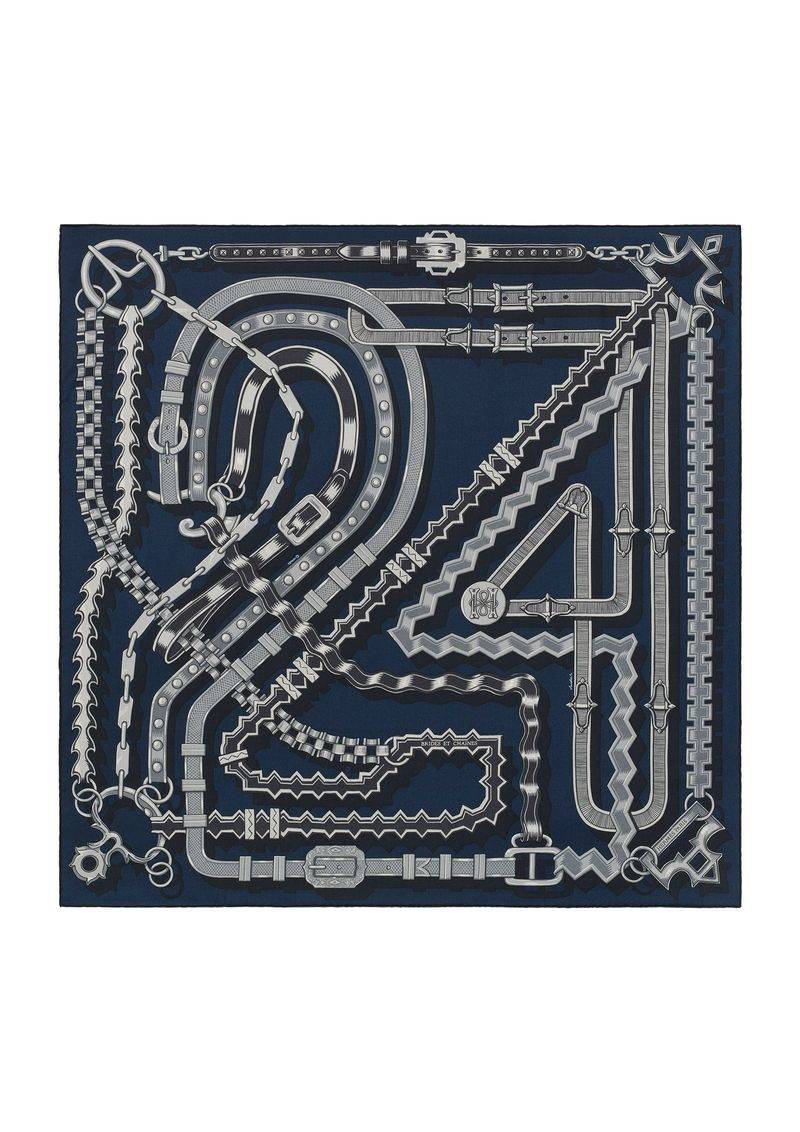 人氣泰星鄺玲玲月前以褲裝配絲巾斜掛於腰間的造型現身機場,再次引起了「絲巾腰帶」的潮流。Hermès這款100釐米茄士咩斜織絲巾印有Émile Hermès系列的馬具、鏈條和腰帶,配上靛藍色的背景,設計非常型格,而且用途廣泛,可以用作披肩、頸巾或腰帶。