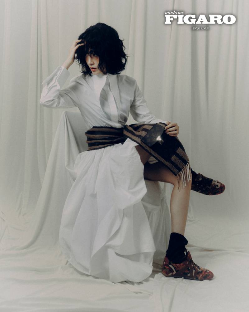 穿起春夏新裝的Fish十分有型,個性爽朗、率直、大方,偶爾露出調皮的表情,但出人意表地,心思異常細膩。她三不五時跟自己對話,尤其愛反思人生,一方不停發問,另一方接着回答。其中演員身份時常引起她對自我的懷疑。「演員大多時候都是被動的,就算我很努力,別人也未必會選我。而被選中時,我又會不斷想:『⋯⋯Why me?我有什麼過人之處?』」她將自己和心理現象「冒牌者症候群」連結起來。「我總覺得快要被人拆穿般,我不值得我擁有的這一切。同時我又覺得很矛盾,因為我已盡了最大的努力,更何況我演得並不差。我有我的才華,大家有目共睹。」問題在於常拿自己和別人比較,她毫不掩飾地說。「這個世界有很多有才華的人,我有什麼特別?我究竟可以給觀眾什麼?」然後她歸納:「我很幸運。我有運,我正在走運。」她眨了眨眼,雙眼閃耀着。1990年生、生肖屬馬的Fish,正值本命年,事業方面的確有吉星高照。