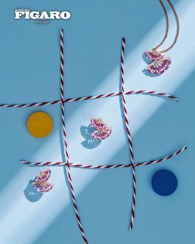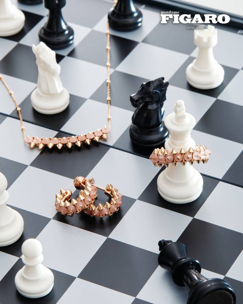 當彩石在西洋棋盤的黑白方格間優雅博弈,晶瑩鑽石如星辰般散落在充滿變數的紙牌陣中。珠寶不再是冰冷的陳設,而是充滿生命力的遊戲主角。這種對比打破了高級首飾肅穆的傳統枷鎖,以一種近乎童心的視角,重新詮釋「高貴」的定義——真正的奢華,是擁有在繁瑣世俗中保持幽默與赤子之心的自由。