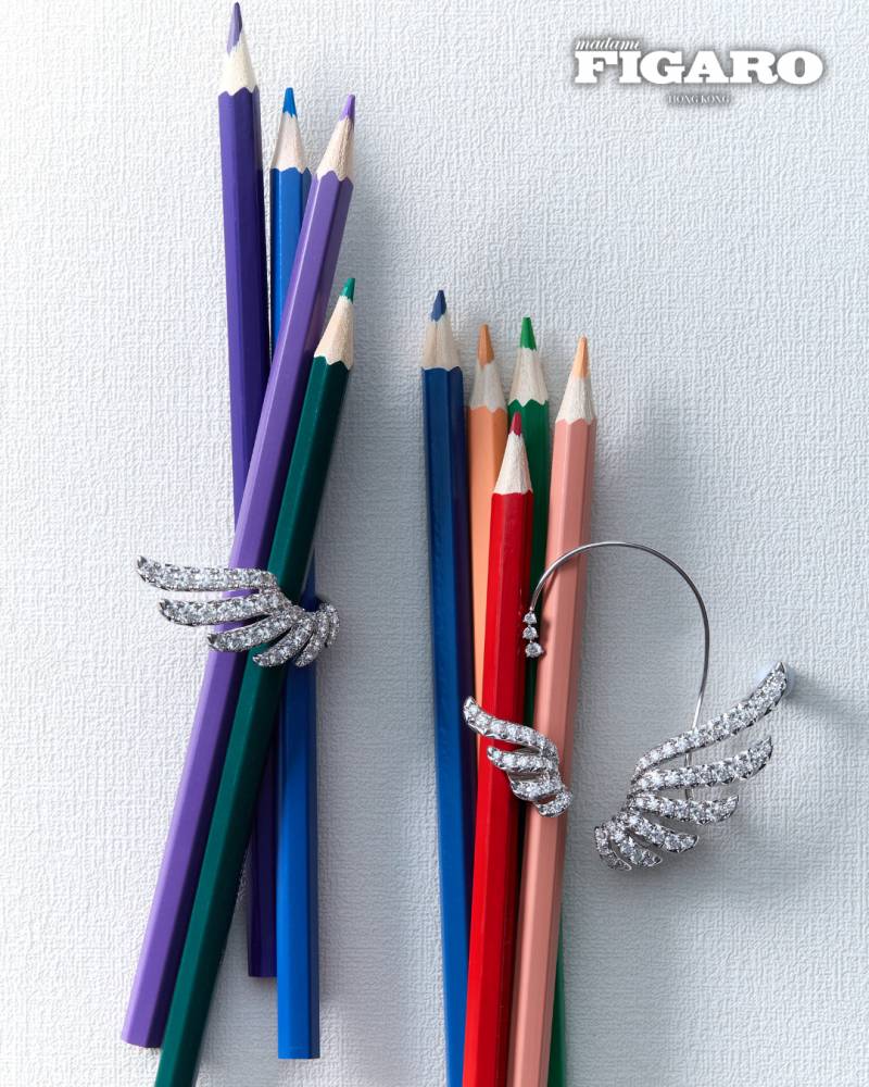 Vela french cut pavé diamond wrap ring in 18k white gold. Vela french cut pavé asymmetrical climber diamond earrings in 18k white gold. HEARTS ON FIRE(圖片來源:MF編輯部)