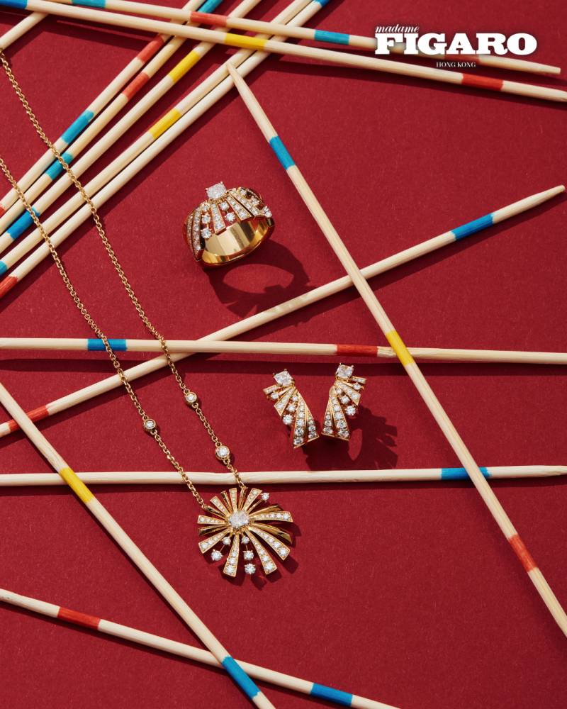 Soleil d’Or Sunrise ring, earring & necklace in yellow gold and diamonds. FRED (圖片來源:MF編輯部)