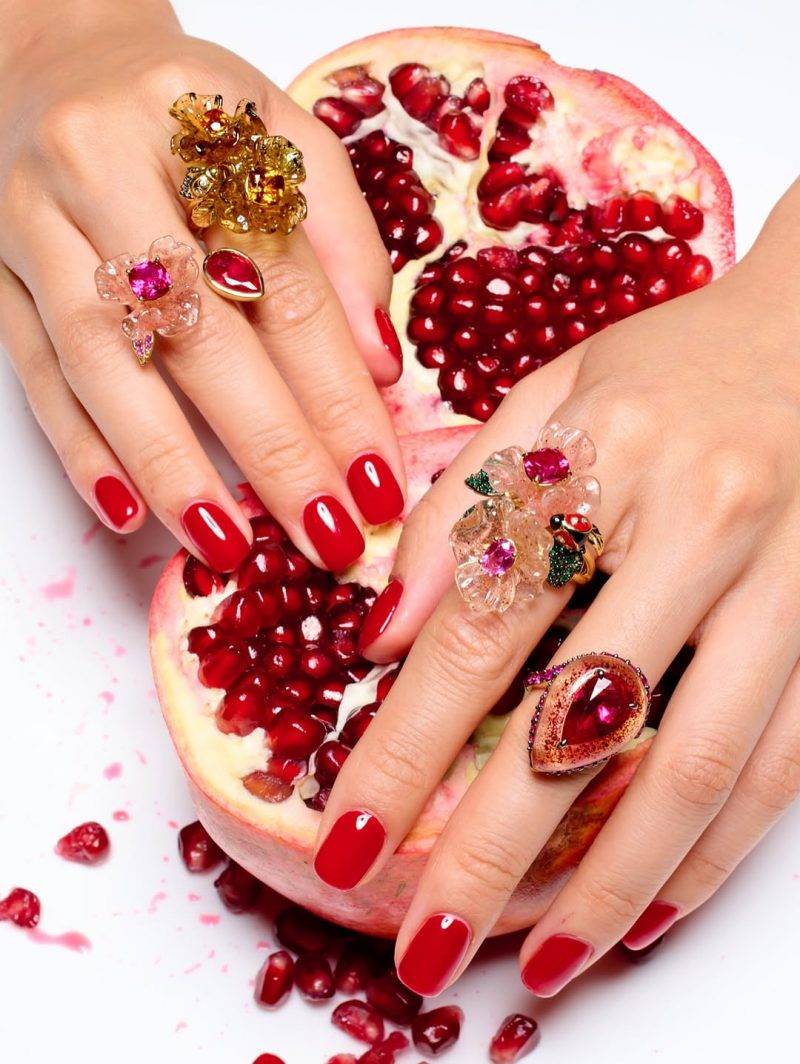 這個珠寶系列的特別之處,是用水果和蔬菜去提煉出它們之中的顏料和精華,注入寶石之中。我們花了四年的時間,研究如何利用天然植物去提煉顏色,因為每一種的蔬菜水果的Behavior都不一樣,每一種都要用不同的方法去提取色素。四年研發之中,我們嘗試了三十多種蔬菜水果,終於成功在火龍果、藍莓、菠菜等成功提取色素,所以這一種的寶石,我們取名為Fruit Gems。