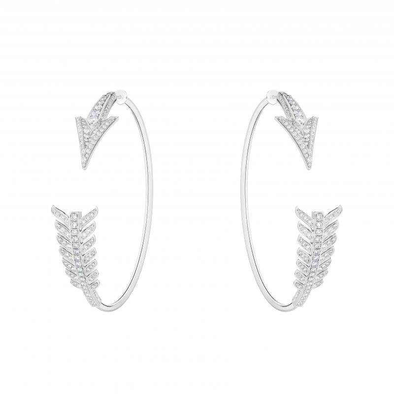 Flèche hoop earrings, paved with diamonds, in white gold.(圖片來源:Boucheron)