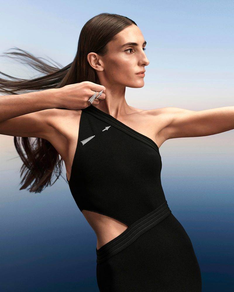 2025年,創意總監Claire Choisne以當代視角重新演繹這一經典意象,推出8款全新Flèche系列珠寶。她不僅延續了箭矢本身的力量感與動態美,更賦予其前所未有的靈活性與現代氣息。這些作品不再只是靜態的裝飾,而是能夠環繞指間、輕撫頸項與腕間,甚至作為胸針佩戴於衣襟之上的動態藝術。它們既是珠寶,也是一段無聲的宣言,屬於那些不畏前行、忠於自我的人。