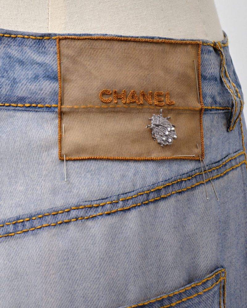 雪紡牛仔褲在行走間輕輕擺動,顛覆人們對牛仔布的既定印象,亦體現了高訂工藝對細節的追求與講究。
