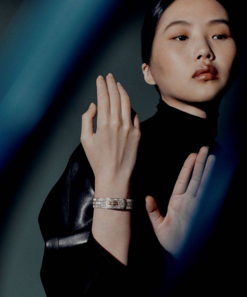 每一件作品都彷彿在訴說一個關於自由與約束、結構與解構的故事,呼應著Pierre Hardy所說:「我喜歡動態,也喜歡以同樣流動的方式捕捉動感。我喜歡身體的律動,與流淌的創意彼此呼應」。在寶石的選擇上,系列亦展現了愛馬仕對材質的嚴謹態度,以玫瑰金、白金、純銀為主材,並鑲嵌鑽石與黑色尖晶石,在Kelly Baguettes項圈及手鐲中,所使用的方鑽更顯奢華高雅。這些材質的交織,讓每件作品都擁有獨特的光影層次,既時尚又浪漫。