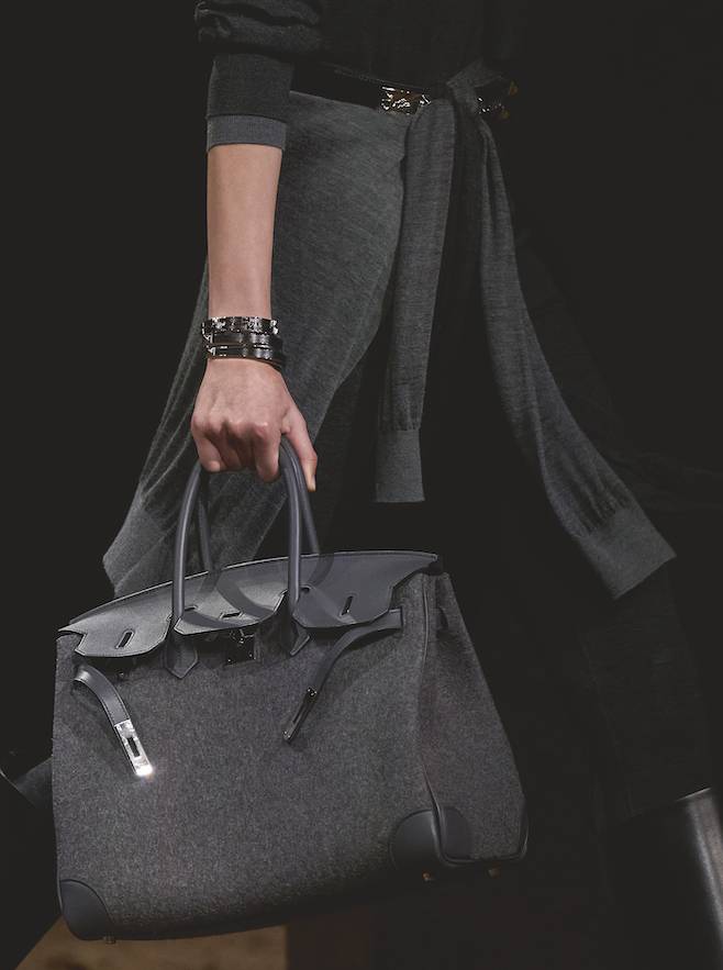 (圖片來源:Hermès)Hermès Birkin中灰色羊毛氈絨及岩灰色Swift小牛皮手袋