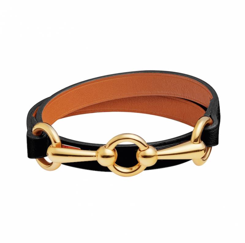 (圖片來源:Hermès)Hermès BOX小牛皮及金色金屬手鐲