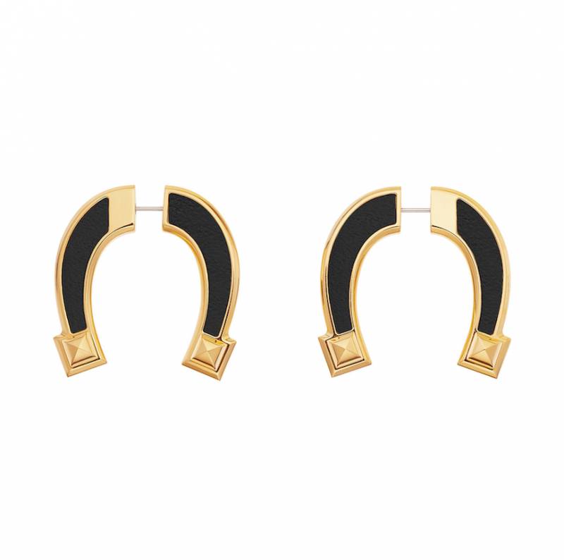 (圖片來源:Hermès)Hermès BOX小牛皮及金色金屬耳環