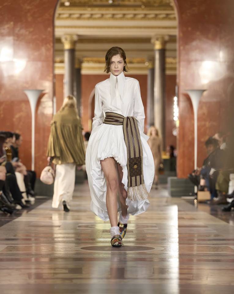 今季,LV時裝騷重返羅浮宮舉辦大騷,地點選於曾是法國王后、路易十四之母Anne d’Autriche曾居住的夏宮舊址。一個充滿歷史餘韻的空間,卻在Nicolas Ghesquière手中轉化為彷彿私人寓所的戲劇舞台。現場陳設不再是普通的伸展台,而是由設計師親自挑選、橫跨不同時代的法式傢俱、古董精品與收藏裝置擺設而成,宛如步入一位風格大師的私人公寓,讓人陶醉於18世紀至今的法式美學之中。