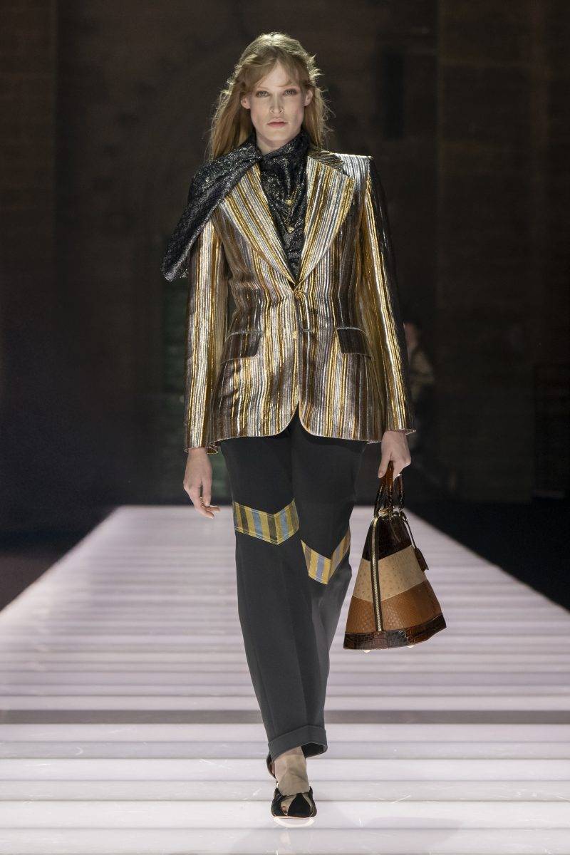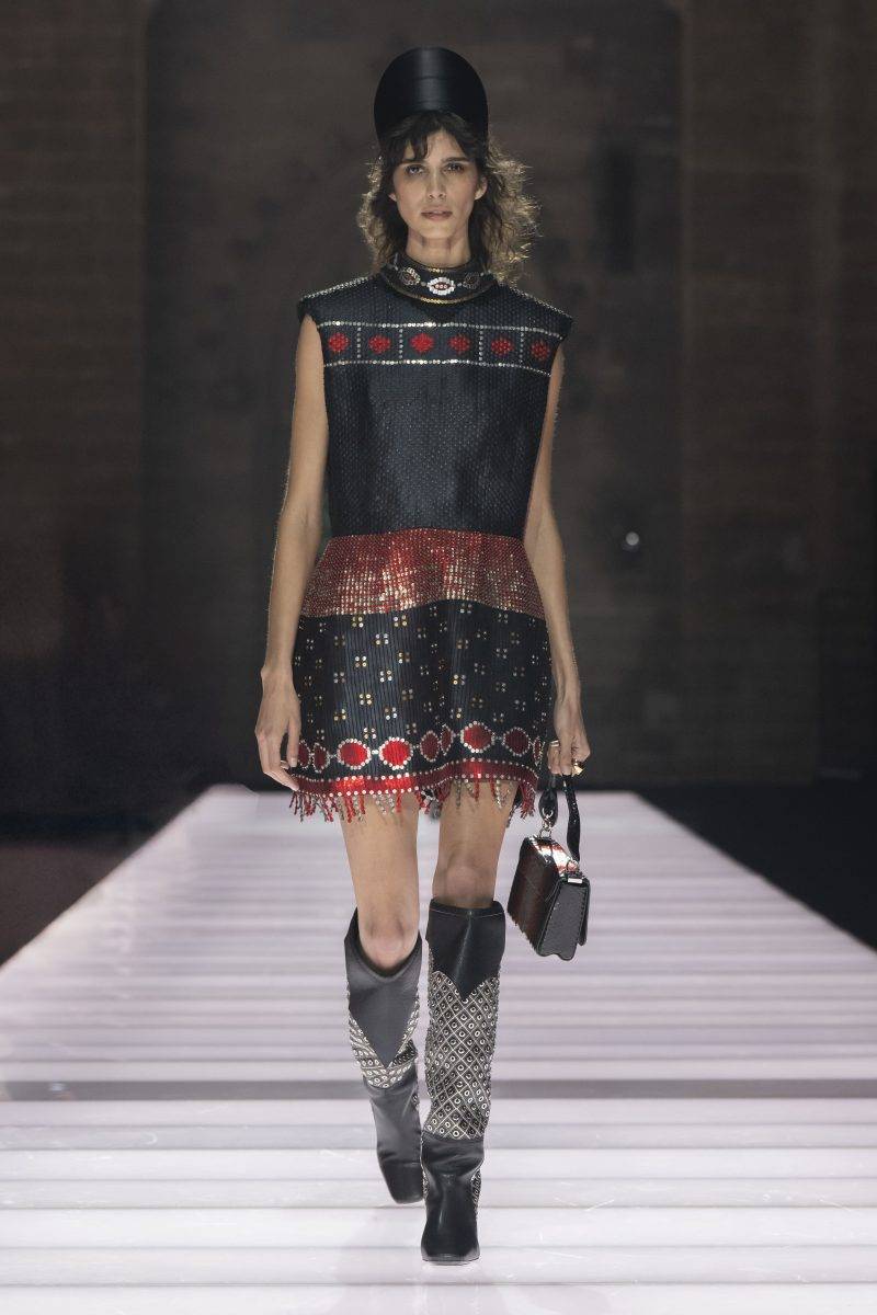 教皇宮內的豐富建築歷史變成新系列的載體,更在劇院式的伸展台上,開展這場跨越時空的想像旅程。服裝融合立體輪廓與金屬細節,為時尚首飾、手袋和配飾帶來全新演繹,展現女性的獨特力量。從騎士風格的披風,到帽飾和靴款,以及融入中 世紀元素的禮服和套裝,演繹了昔日的設計。