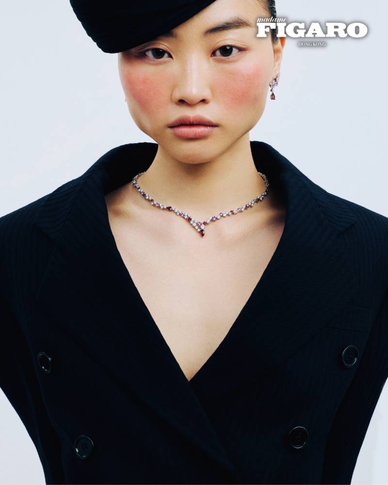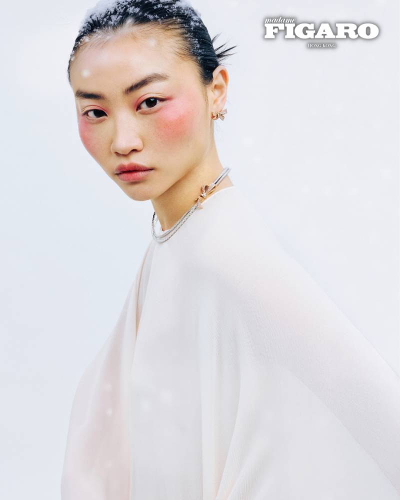 白雪覆蓋天地,聲與色就似被削去,只剩下一份冷靜和純粹。在寂靜之中,落在耳垂、頸際、指尖與手腕的珠寶卻愈發清晰,光線沿着切割俐落的稜角折射,肆意閃耀。