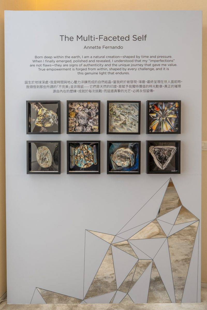 我們亦透過倫敦多元創作藝術家Annette Fernando的作品《The Multi-Faceted Self》及互動療癒填色工作坊傳達:天然鑽石獨一無二的特質——每顆鑽石皆蘊含獨特的紋理與內含物,這些所謂的「不完美」,是無可複製的印記。正如每位女性,皆擁有自己的性格、經歷與生命軌跡;若盲目追隨千篇一律的審美標準,反而會掩蓋真實的光芒。