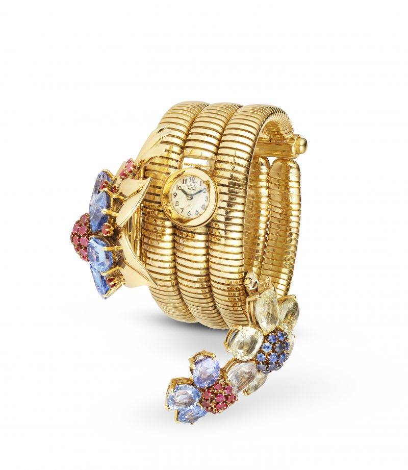 Passe-Partout transformable secret watch 1939, yellow gold, white gold, sapphires, yellow sapphires, rubies Van Cleef & Arpels Collection(圖片來源:VAN CLEEF & ARPELS)
