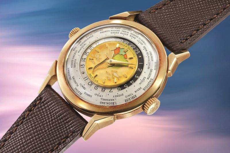 1. 百達翡麗型號2523 18K黃金雙冠世界時區腕錶,1953年製