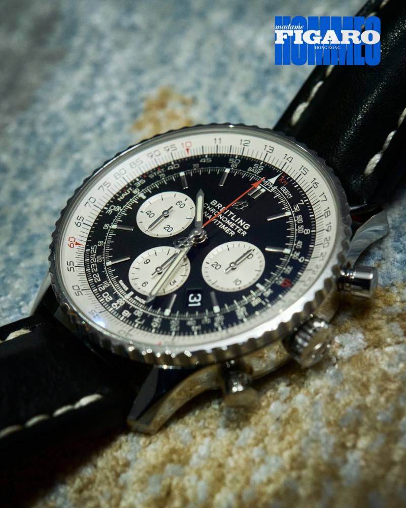 AT︰我會用Breitling的Navitimer形容自己當下的狀態。(生活好像錶盤上密麻麻的數字一般忙亂?)不是,不是!Breitling這隻Navitmer是於東方表行和Breitling開設第一間中環聯營店時推出的,採用B01品牌自家機芯,它是品牌一個非常標誌性的飛行員腕錶系列,歷史悠久,創作初衷就是為了飛行員的實用需求,因此故事性比較強,所以我覺得這是一個很好的選擇。外圈的飛行滑尺是讓飛行員在沒有任何電子科技輔助的情況下進行重要的飛行計算,這把尺就好像在量度我的工作及生活,我要從中取一個平衡,因為工作有多忙也好,我都要留一些時間給家人和身邊的人。另外因為工作需要,我經常要到外地公幹,有很多時間都在天空上,自己又喜歡旅遊,所以我覺得用這飛行錶去形容自己現時的狀態很適合,兼且我希望可以擁有能翱翔世界的一個人生。