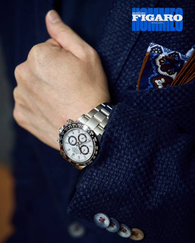 AT︰就是這隻Rolex的Daytona編號116500,Daytona是品牌一隻很著名的腕錶,此錶我於2023年買入,因為2023年我剛好加入錶行10年,那一刻我想買一枚腕錶去紀念這個重要日子,而Rolex早就在我的願望清單裏。當然要入手的話,我希望選擇品牌的頂尖型號,而且要選一款可以經得起時間考驗的,在自己的預算下,此Daytona就成為我的不二之選,就當是給自己一個10年的獎勵。這是一隻Chronograph計時錶,它是賽車手在賽車場上跟時間競賽的好夥伴,這給我很好的正能量,我希望自己未來都能本着這個對時間衝刺的概念或者心態去衝下一個10年,所以這錶對我來說意義特別大。而幸運的是,此錶於2016年推出,但2023年的時候品牌剛巧為此型號推出嶄新版本因而將此錶停產了,所以我這隻就變得更加珍貴。