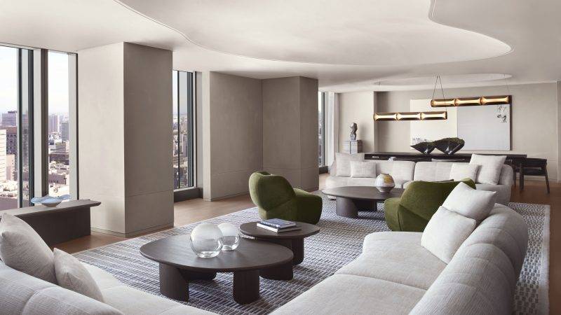 JW Marriott Hotel Tokyo的定位,並不是要在房價或奢華程度上與跟其他同類型高級酒店競速,而是用「正念」與「可被日常化的奢侈」殺出一條新路。首先,酒店所在的高輪Gateway City不是傳統觀光客必去的鬧區,而是一個正在成形的未來社區,來往的是新創公司員工、商務旅客與好奇的城市探索者,氛圍比新宿、澀谷等老牌熱點更清爽、節奏也稍慢半拍。
