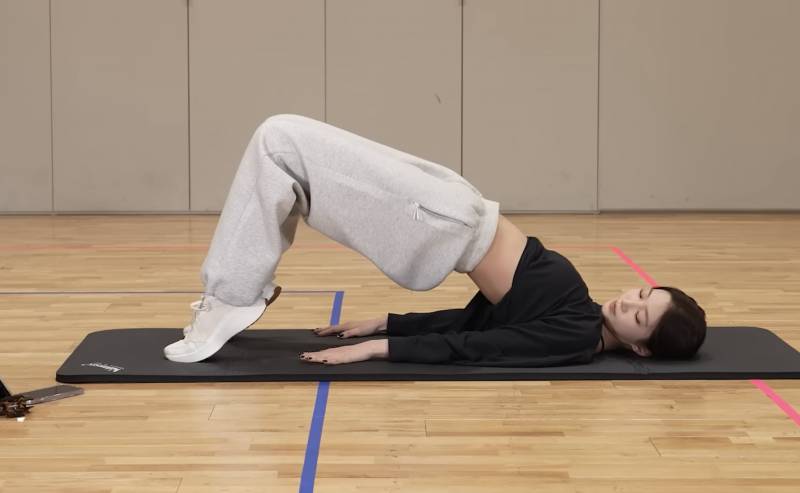 平躺在瑜珈墊上,每次臀部抬起時,腰部都要離開瑜珈墊。Tips:把腳肘升起只用腳尖支撐,效果會更明顯!