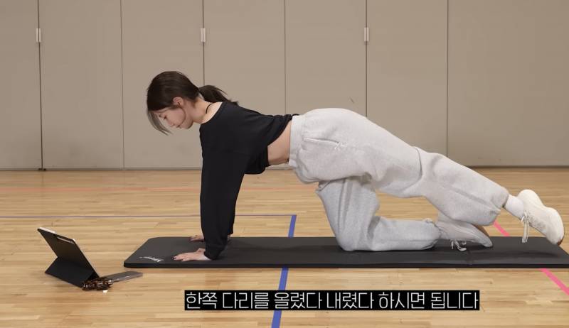 雙手撐在瑜珈墊上,雙膝跪下,讓身體呈現像一張枱盤,然後把左腳抬起,重覆至30秒便可以左右交替。Tips:抬起的腿可以微微向外,會令效果更好!