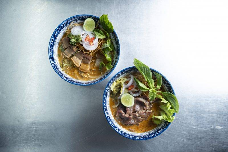 餐廳主打招牌泰北古法船麵及泰北咖哩湯麵,湯底濃郁香辣、配料新鮮豐富,咖哩湯麵更可選擇A4和牛,每一口都是濃香與肉感的完美交融!喜歡飯食的朋友,不妨試試泰式豬手飯。豬手經長時間慢火燉煮至軟嫩入味、膠質豐盈,口感香滑,配以主廚特制香濃酸辣醬汁,微酸帶辣非常開胃!