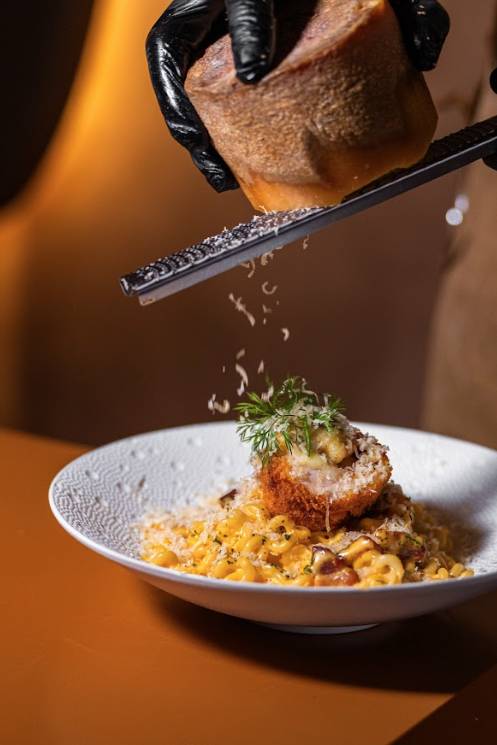 喜歡吃漢堡的話,可以試試極具創意的「熔岩芝士朱古力餵飼和牛胸肉漢堡」,招牌菜式「卡邦尼扭扭意粉伴自家豚五花肉」則採用自家醃製的厚切五花肉,配上濃郁芝士和彈牙的扭扭意粉,非常香濃惹味!
