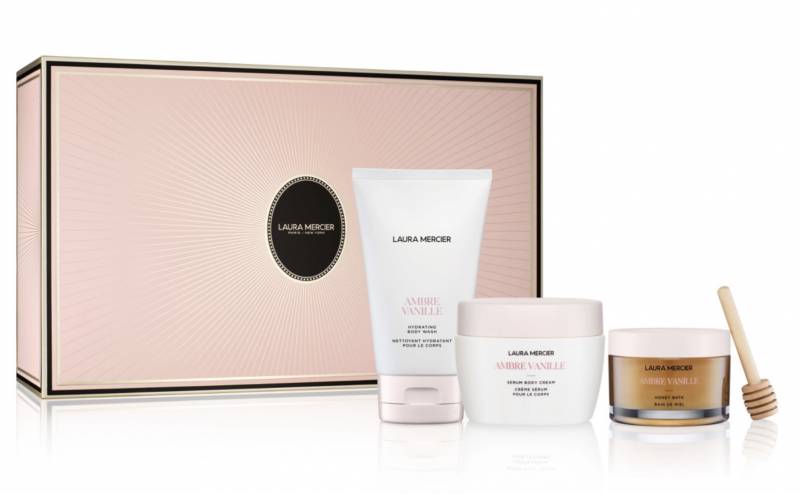Laura Mercier將琥珀與雲呢拿結合,打造純樸且親密的甜蜜氛圍,一套3件的香氛修護套裝,可以為肌膚保濕,以及讓你在沐浴之際更感療癒放鬆。(套裝包括:全新琥珀香草蜜漾泡泡浴露 85ml、全新 琥珀香草柔膚保濕沐浴乳 100ml、琥珀香草身體精華潤膚乳 200ml )