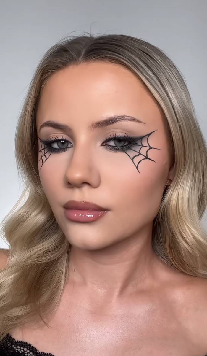 同樣只需要黑色眼線筆和眼影,在眼角附近畫上蜘蛛網眼妝也十分好看!可以的話,不妨利用彩色眼線筆疊加在蜘蛛網上。