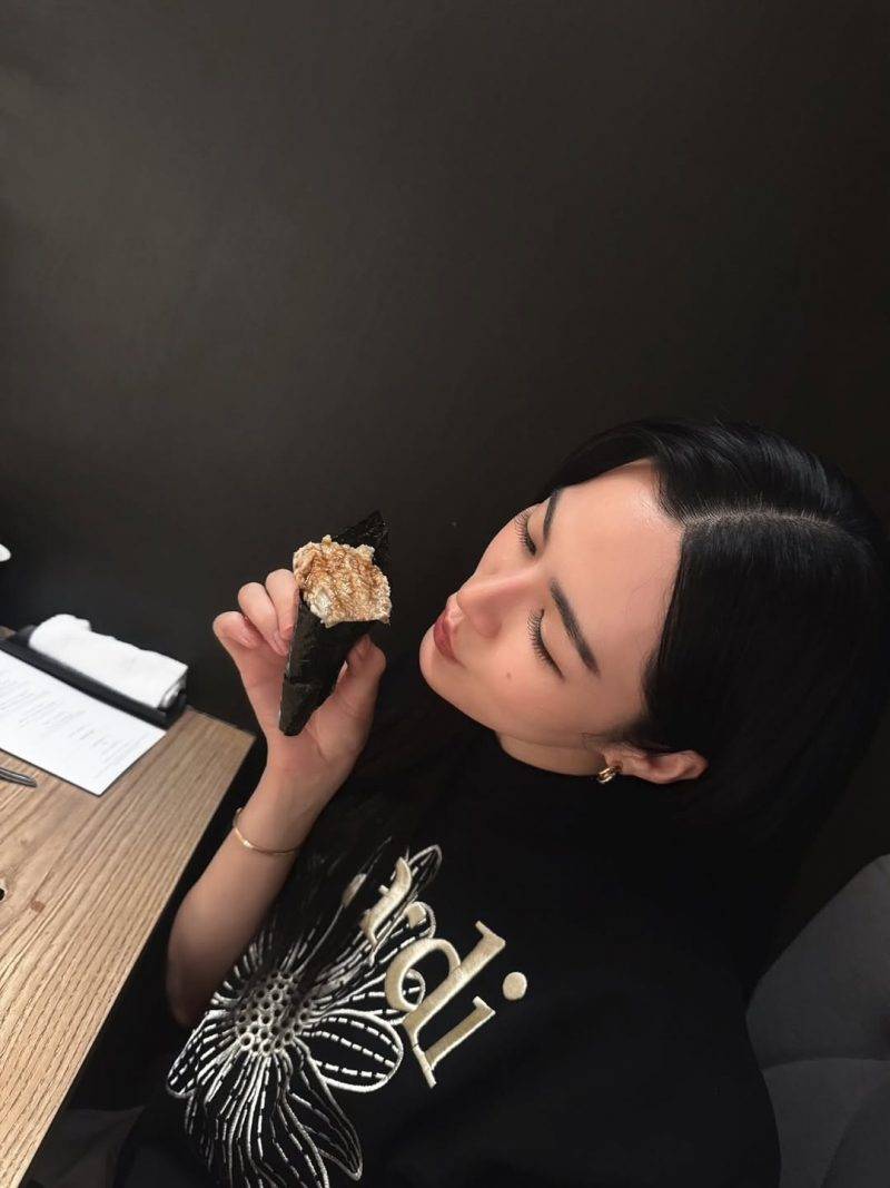 她經常都會到健身室進行高強度的訓練,先做1小時無氧訓練(如重量訓練雕塑肌肉),接着1小時有氧訓練(如跑步或樓梯機),幫助維持勻稱身材與低體脂率,讓腹肌輪廓清晰顯現。