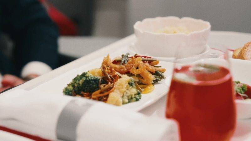 經濟艙餐飲熱飯豐盛,經典兩餸飯如蒸魚炒飯熱騰騰呈上,甜品選用Mövenpick冰淇淋,瑞士奶香完美收尾。商務艙與東涌世茂喜來登酒店(Sheraton Hong Kong Tung Chung Hotel)「采悅軒」(YUE)合作,行政總廚Jacky Chung以大嶼山食材創作靈感菜餚,將乾海味轉化為蒸鮮海鮮或傳統點心。