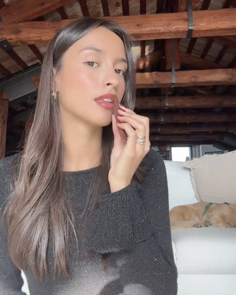 不少歐美女星都會用唇線筆打造唇妝,而Alexandra亦不例外!她選用偏紅的唇線筆,輕輕勾勒唇型,以及為雙唇增添紅潤感,然後再塗上啡紅調的唇蜜,即刻擁有飽滿光澤效果、打造今年最流行的「玻璃唇」。