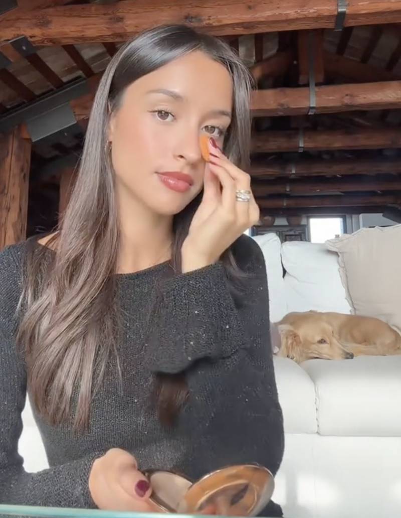Alexandra平日的底妝喜歡自然清透,所以只會使用少量粉底配合化妝掃均勻塗抹於臉上,保留肌膚天然光澤與紋理,營造「零負擔」的透明裸肌感。