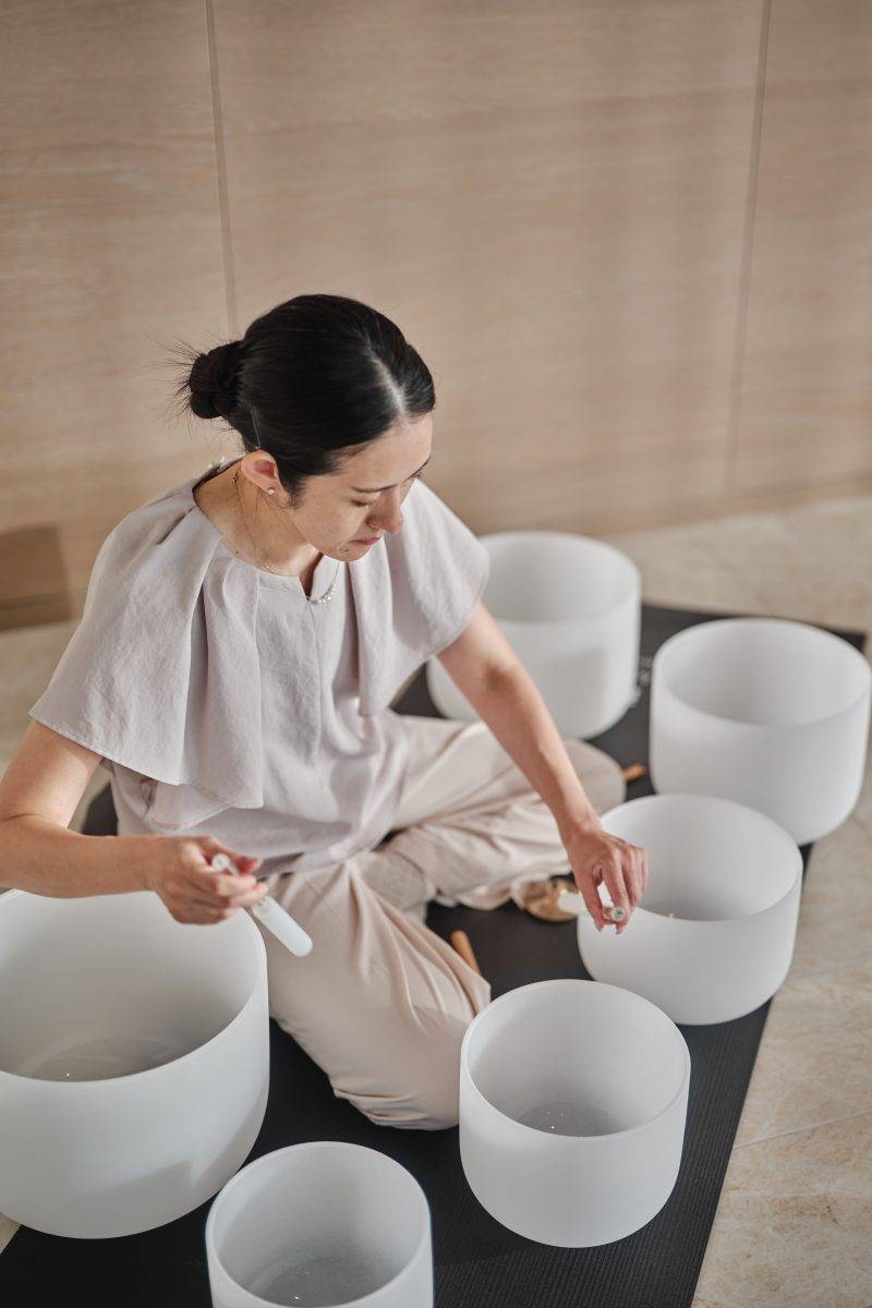 另一個令我印象深刻的是由聲療師主持的 sound healing 與冥想體驗。水晶頌缽的聲波在空間內來回震盪,聲音像一層又一層透明的波浪,輕輕拍打在身體邊界。 當我躺在墊子上閉上眼睛,城市的車聲與手機提示音完全淡出,取而代之的是一種彷彿從身體深處升起的靜默感——那不是「什麼都沒有」的空白,而是一種清晰而溫柔的存在感:我在這裡,完整地存在。