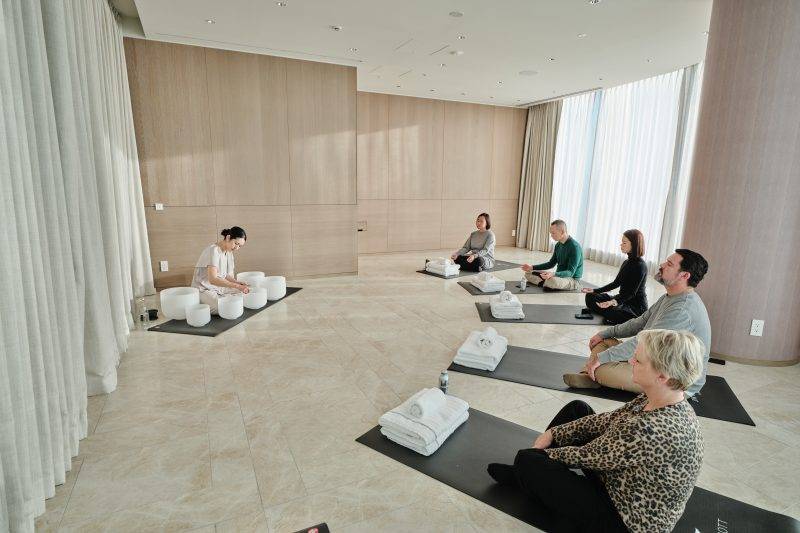 如果說房間與水療是個人專屬的靜心空間,那麼酒店安排的一系列活動,則像是為整個樓層寫好的「共同呼吸節奏」。 清晨的 Gentle Flow Yoga 在 Sora 空間進行,大片落地窗讓自然光傾洩而入,導師以慢節奏帶領大家在伸展與呼吸之間漸漸甦醒。 那不是一堂追求燃燒卡路里或完成高難度動作的課,而是一場讓身體重新對齊、讓心在一天開始前先穩定下來的晨間儀式。