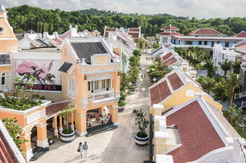走出房門,整個度假村就是一座展開中的故事書。Rue de Lamarck是校園裡最熱鬧的一條街,就像當年的學生商店街,現在則變成遊客的散步大道。 色彩斑斕的建築外牆、燈籠、高低錯落的陽台、手作工藝店與小酒吧排列在兩旁,夜幕降臨時,燈光亮起,這裡搖身一變成為懷舊市集,偶爾還有主題夜市與越式街頭美食攤位,把越南的煙火氣拉進這座「學術殿堂」。