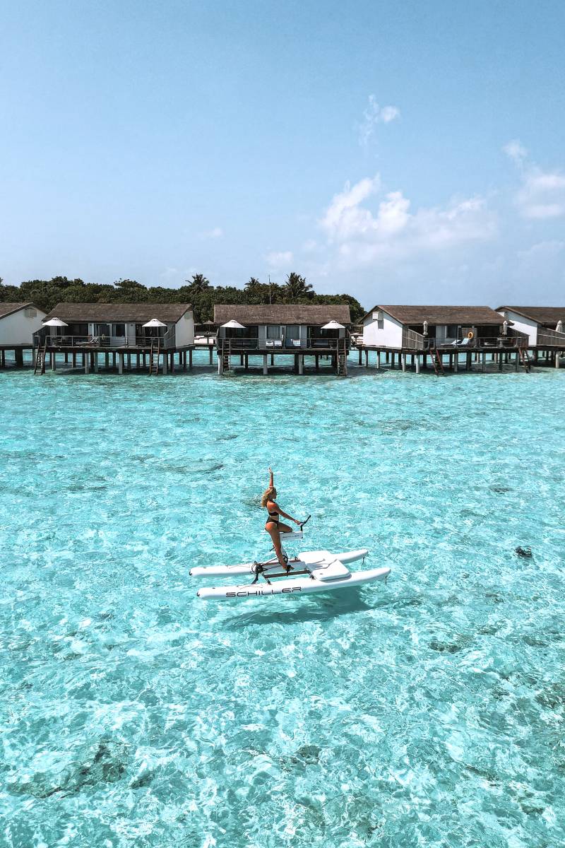 如果你偏好經典馬爾代夫畫面,水上別墅是另一種選擇。懸在北側潟湖之上的木屋,有些設有可直接通海的階梯,有些配置玻璃地板,讓魚群的動態成為房內風景;部分還帶私人泳池,水面幾乎與潟湖連成一線,拍照時很容易拍出「無邊無際」的效果。這些最適合蜜月情侶或追求水上私密感的旅客。