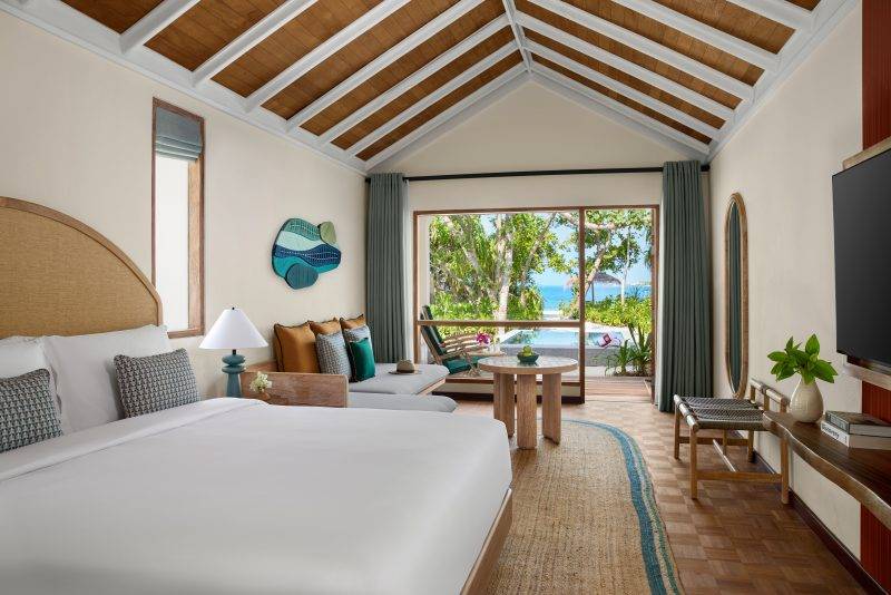 NH Collection Maldives Reethi Resort 提供沙灘、花園與水上等多樣房型,總數約105 間,一島內就呈現三種不同的度假節奏。